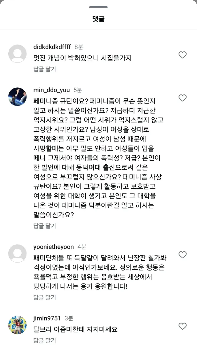 자기생각으로 페미니즘을 지지하는애들이 하나도 없는거같음