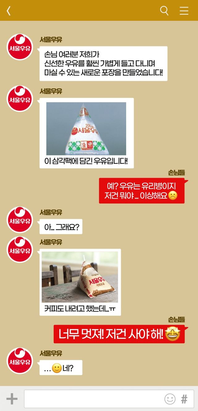 두 번째는 ‘삼각팩’ 그 자체다. 사람은 이미 맛을 보기 전에 눈으로 맛을 짐작하거나 기대한다. 다른 우유들과 달리 삼각팩 모양에 담겨있는 ‘서울우유 커피 삼각포리’는 이제 유일무이한 디자인이 되어버렸다. 그런데 전 국민이 이 제품을 안다. 이게 바로 ‘힙’이 아니던가?