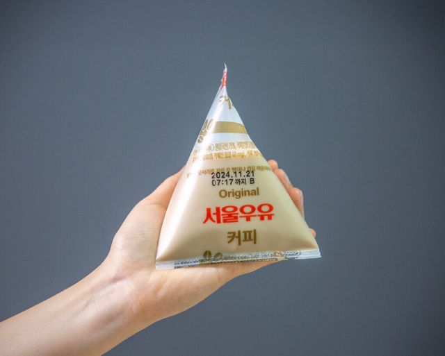 하지만 이 삼각팩에 우유 대신 커피가 담기자 상황은 이렇게 변한다.