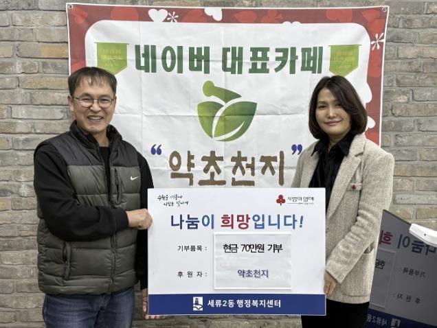 약초천지, 수원시 권선구 세류2동에 이웃돕기 성금 70만원 기부