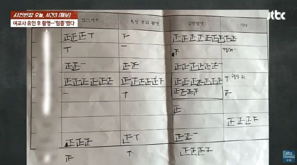 피해 교사들이 항목별로 기록한 불법 촬영 횟수. (사진=JTBC 사건반장 캡처)