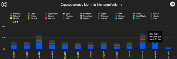 조사기간 바이낸스에서는 약 1조 달러(한화 약 1,457조 원)의 가상화폐 현물 거래가 발생했다. 지난 2024년 12월 바이낸스 거래 대금은 11월 값인 9,860억 달러(한화 약 1,437조 원)와 비교해 1.42% 증가했다.
