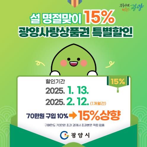 설 명절맞이 소비 진작 이벤트 기간에는 광양사랑상품권 할인율이 15%로 상향 조정된다.