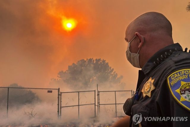 산불 연기에 뒤덮인 미국 로스앤젤레스(LA) 모습 / UPI-연합뉴스