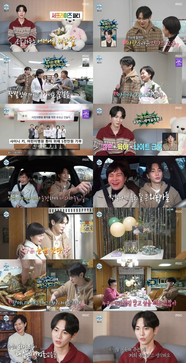 집에 돌아온 어머니는 키가 꾸며 놓은 서프라이즈 이벤트와 진심이 담긴 편지에 “이런 아들이 어디 있어~”라며 깜짝 놀랐다. 처음 간호사 모자를 수여받던 어머니의 가관식 사진에 남긴 키의 편지에 눈을 떼지 못했다. 키의 어머니 또한 오랜만에 본 아들을 위해 크리스마스 카드와 용돈을 전하기도. 키는 “엄마의 인생은 앞으로 더 나아갈 재미있는 미래가 많을 것처럼 느껴진다”라며 “하고 싶은 거 다 하면서 마음대로 자유롭게 살았으면 좋겠다. 제가 잘 지원해 주는 게 저의 몫이라고 생각한다“라고 바람을 전했다.