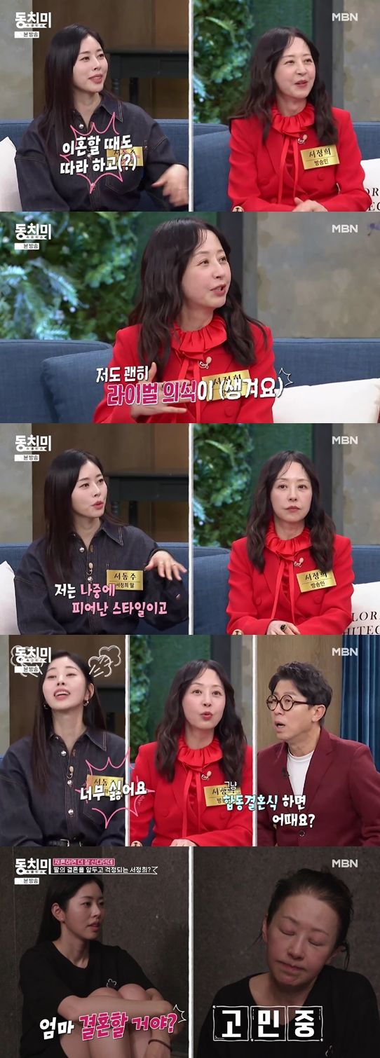합동 결혼식을 하면 어떠냐는 말에 서동주는 "절대 싫다"며 버럭했고, 서정희는 "그 얘기를 했더니 동주가 발끈하더라"라고 답했다.