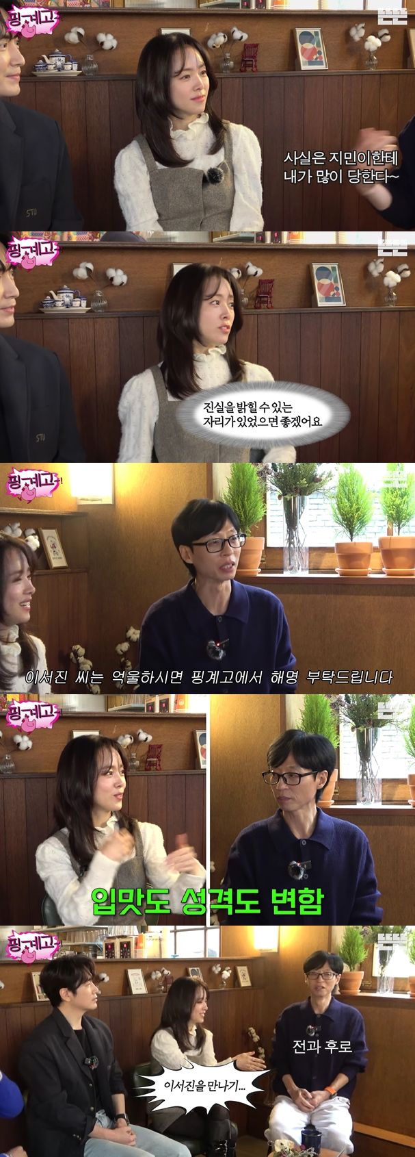 일하면서 성격이 변했냐고 다시금 묻자 "너무 많이 변했다. '이산' 이서진을 만나기 전 후로"라고 말하던 한지민은 "이서진 선배님을 만나기 전과 후로"라며 급하게 정정했다.