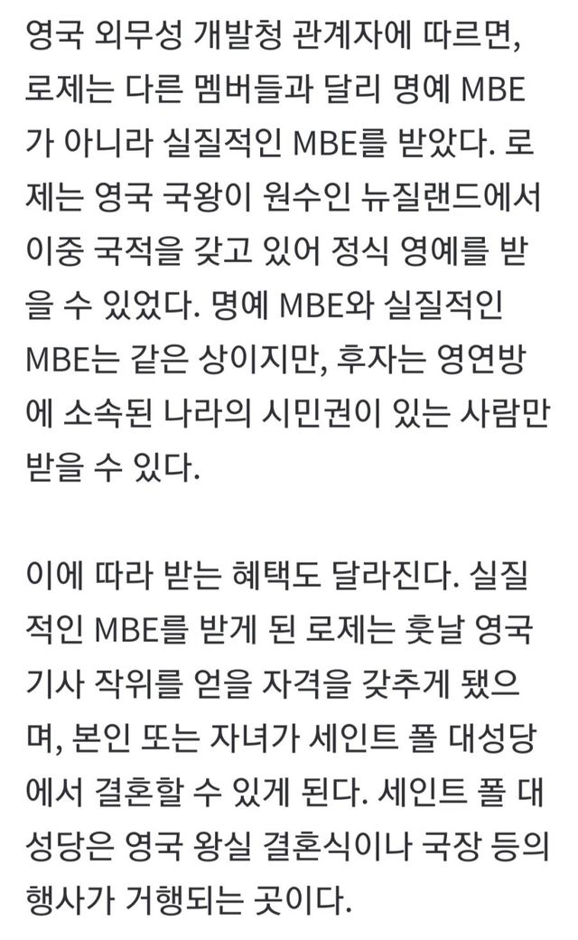 특히 로제는 다른 블랙핑크 멤버와는 달리 영연방 국적을 소지하고 있어