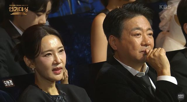 함은정 수상 소감을 듣는 오현경과 윤다훈 / KBS