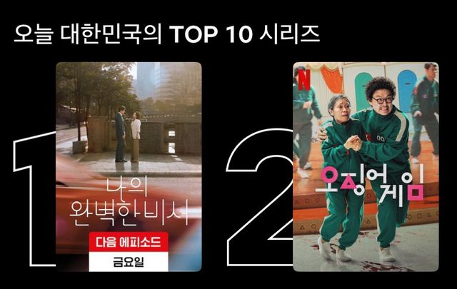 13일 오전 10시 30분 기준 넷플릭스 대한민국 톱10 시리즈에는 1위 '나의 완벽한 비서'를 비롯해, 2위 '오징어 게임2', 3위 '별들에게 물어봐', 4위 '이혼숙려캠프', 5위 '옥씨부인전', 6위 '미스터트롯', 7위 '냉장고를 부탁해', 8위 '지금 거신 전화는', 9위 '스토브리그', 10위 '체크인 한양' 순으로 작품 랭크가 매겨졌다.