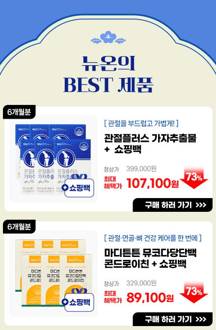 이외에도 관절플러스 가자추출물, 마디튼튼 뮤코다당단백 콘드로이친, 혈당컷 바나바리프 밸런스케어, 뷰네핏 에이티 효소 등 관절 건강, 혈당 관리, 소화 기능 개선 등을 돕는 명절 효도 선물로 좋은 다양한 제품군을 할인 판매한다.