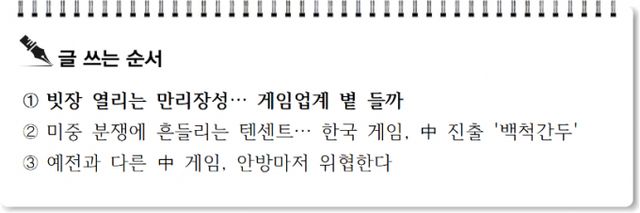 게임 관련 강도 높은 규제와 중국 게임사들의 눈부신 성장은 국내 게임사들의 걸림돌이다. 판호 발급이 어려워 개발을 해도 출시 시점이 늦춰지면서 참신성이 떨어질 수 있어서다. 트렌드에 민감한 게임 시장에서 불리한 요소다.