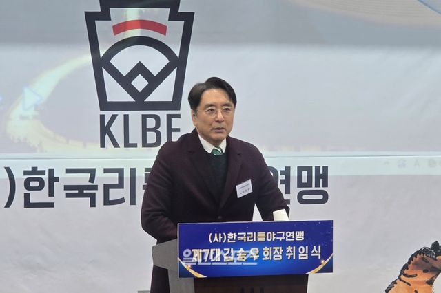 김승우 한국리틀야구연맹 회장이 13일 경기도 화성드림파크 대회의실에서 열린 취임식을 통해 4년 임기의 첫 발을 내딛었다. 김승우 회장은 지난해 12월 치른 제7대 한국리틀야구연맹 회장 선거에서 153표 중 86표를 획득, 61표를 얻은 유승안 전 회장을 누르고 당선됐다. 김승우 신임 회장은 2025년 1월 1일부터 2028년까지 4년간 리틀야구를 이끈다.