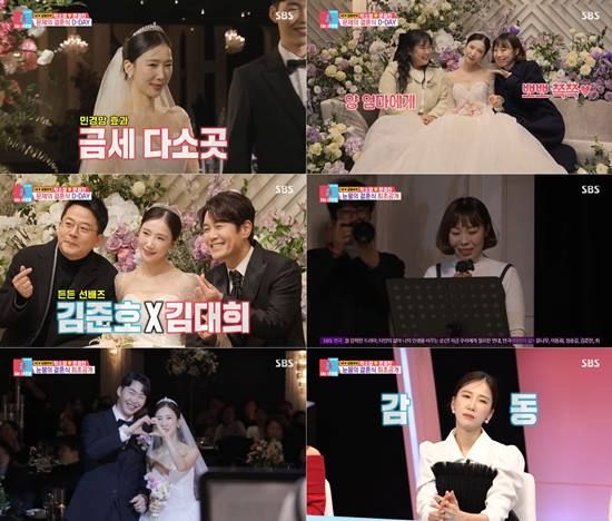 그런가 하면 결혼식 입장 직전까지 수다스러운 박소영이 김민경의 제지를 받는 모습은 웃음을 유발했다. 심지어 박소영은 아버지의 손을 잡고 버진로드를 걸을 때도 하객들에게 인사하느라 지치지 않는 에너자이저 면모로 보는 이들의 미소를 짓게 했다.