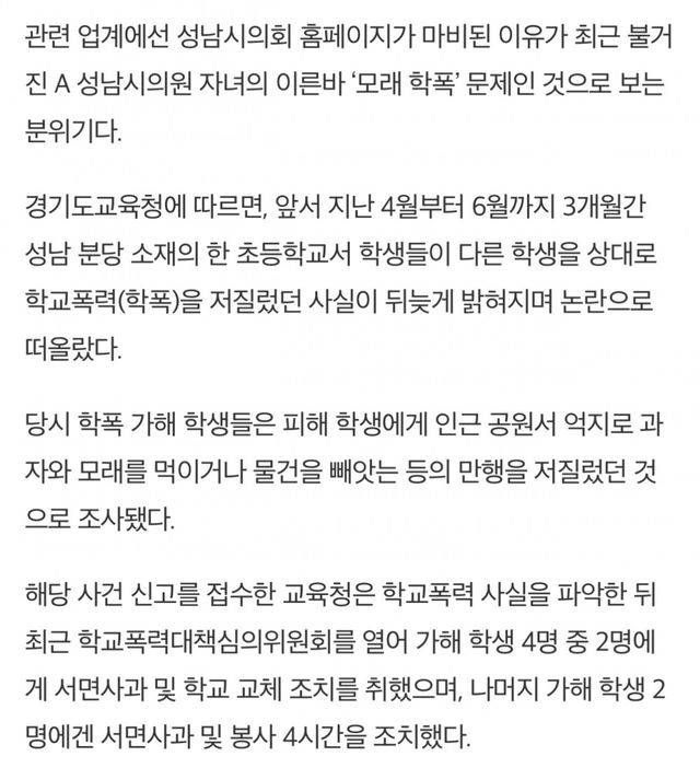 1. 분당서현초 6학년 아이를 모래먹이며 수개월동안 괴롭힘