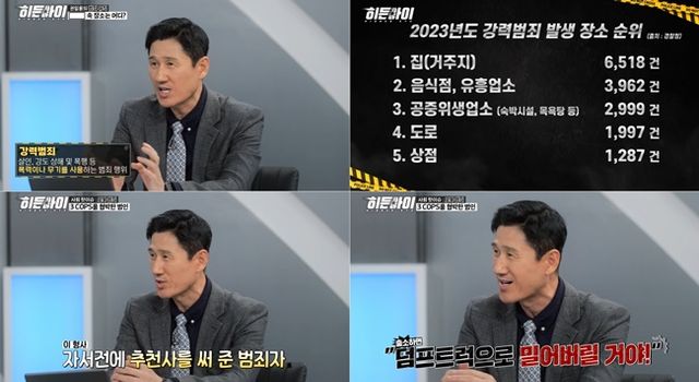 '본캐'인 30년 이상의 베테랑 현직 형사로서 존재감도 과시했다. 이날 '히든아이'에서는 강력범죄 사건을 집중, 이대우 형사는 "강력범죄는 살인, 강도 상해 및 폭행 등과 같이 사람의 생명에 살상을 가하는, 폭력이나 무기를 사용해서 행해지는 범죄 행위를 의미한다"고 설명했다.