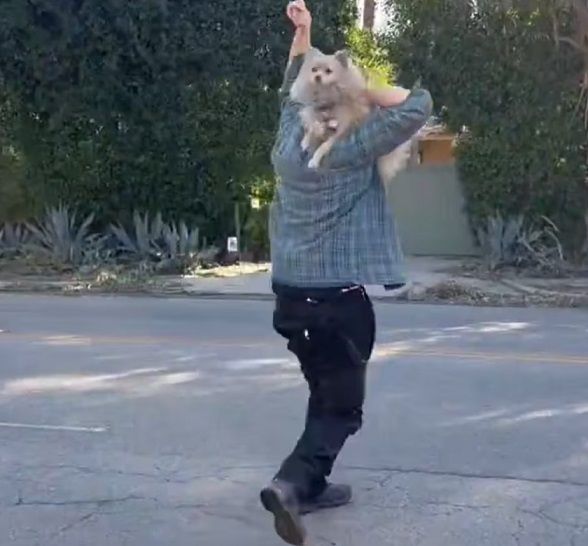콜빈이 오레오를 안고 기쁨의 환호성을 지르는 모습