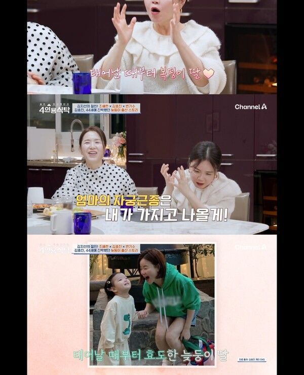 지난 13일 방송된 채널A 예능 프로그램 절친 토큐멘터리 – 4인용 식탁에 출연한 김효진은 조혜련, 변기수 등과 함께 늦둥이 둘째 출산의 비하인드를 공유했다.