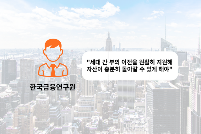 서정호 한국금융연구원 선임연구위원은 “부(富)의 세대 간 이전을 촉진하기 위해 충분한 유인책을 부여해야 한다”며 “일본의 경우 상속세법 개정을 통해 상속세 부과 기간을 피상속인 사망 이전 3년에서 7년으로 연장했는데 이를 통해 부의 조기 승계가 촉진될 것으로 기대한다”고 진단했다.