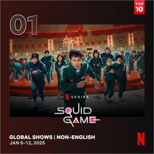 15일 넷플릭스가 발표한 1월 둘째 주(1월 6일~12일) 글로벌 톱 10 자료에 따르면, '오징어 게임2'는 총 시청 시간 1억 8830만 시간을 기록하며 3주 연속 1위를 차지했다. 이는 약 2600만 명이 시청한 것으로 추산된다.