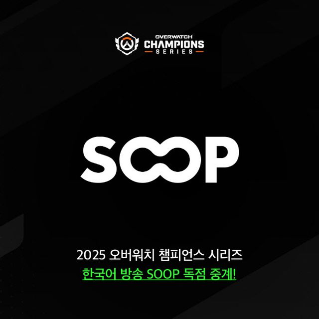 SOOP는 ‘2025 오버워치 챔피언스 시리즈(Overwatch Champions Series, 이하 OWCS)’의 한국어 방송을 독점 중계한다고 15일 밝혔다.