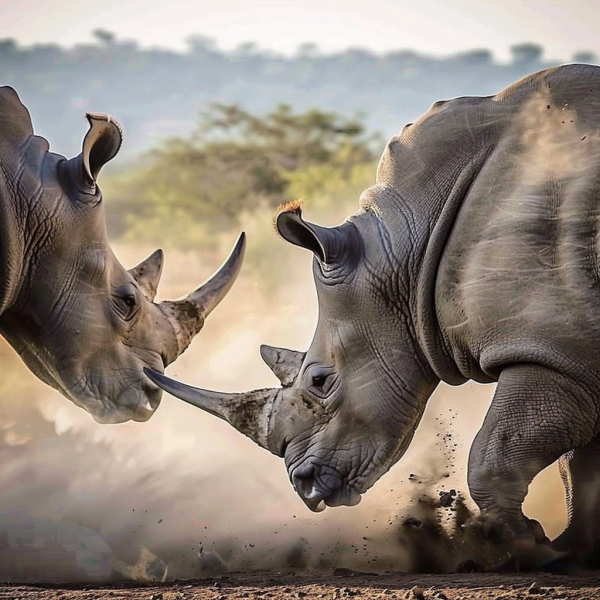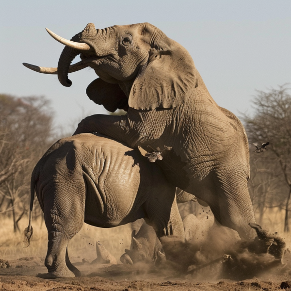 20세기 초, 남아프리카의 한 사파리 지역에서 코끼리와 코뿔소의 충돌이 목격된 바 있음.