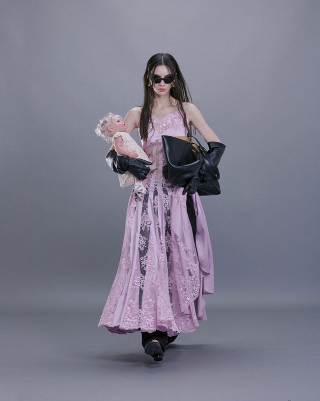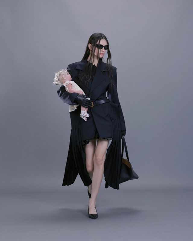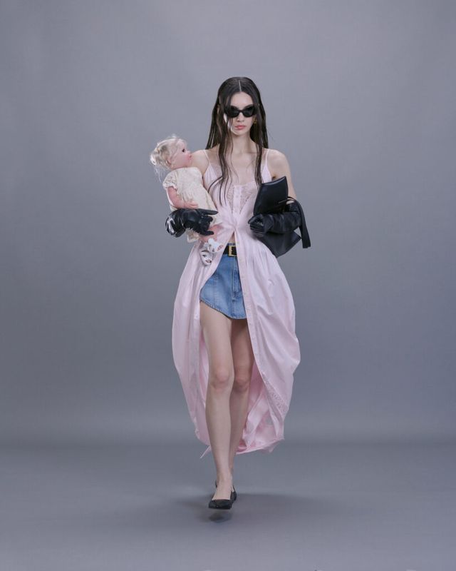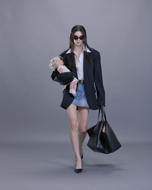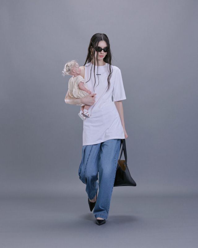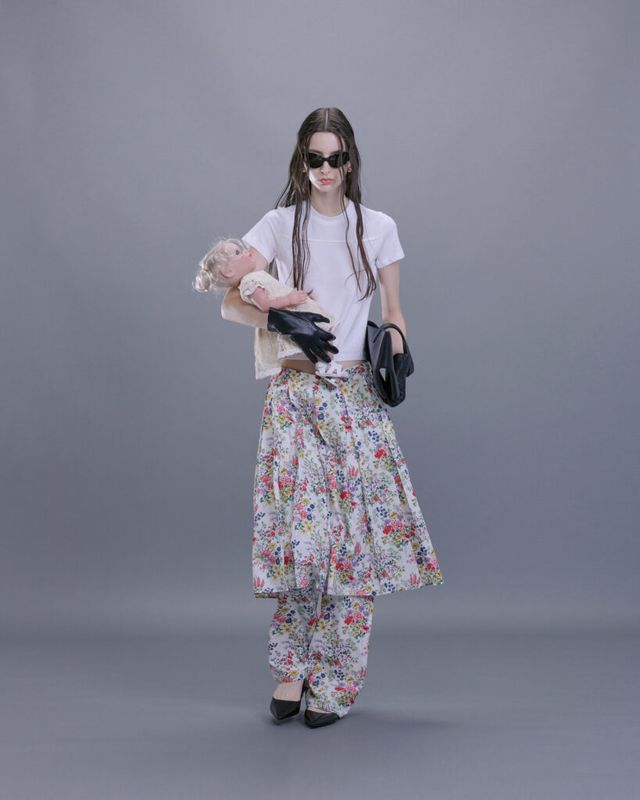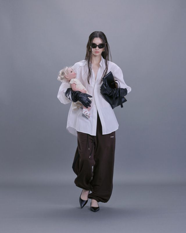 NOTE 영화 <킬 빌(Kill Bill)>에 등장하는 주인공 키도와 블루 벨벳의 캐릭터 도로시를 떠올리며, ‘여자, 엄마 그리고 킬러’라는 공통 키워드를 본봄의 취향과 해석, 동시대적 미감으로 변주했다. 가슴을 조이는 벨트 디테일 톱과 시그니처 디자인의 데님 팬츠 등 각각의 아이템과 스타일링도 매력적이지만, 인형을 한 손에 안은 채 선글라스를 쓴 연출도 상당히 흥미로웠다.