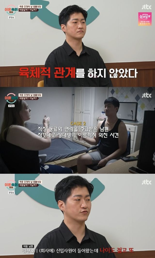 이에 대해 남편은 "신입 사원이 들어왔는데 나이도 젊고 와이프는 집에서 바가지만 긁는다. 호감을 느낀 상태고 아내를 일부러 화나게 하려고 '왜 너랑 결혼했냐' 이런 말들을 했다"고 인정했다.