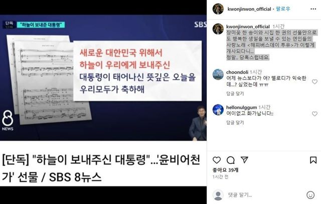 이 소식을 접한 가수 권진원은 17일 인스타그램에 "장미꽃 한 송이와 시집 한 권의 선물만으로도 행복한 생일을 보낼 수 있는 연인들의 사랑 노래 '해피 버스데이 투유'가 이렇게 개사되다니 정말 당혹스럽다"고 전했다.