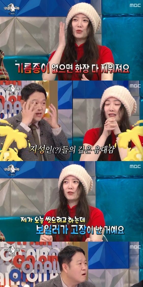 구혜선은 15일 방송한 MBC 예능 프로그램 '라디오스타'에서 이번 '라디오스타' 녹화를 위해서 기름 종이를 많이 가져왔다고 말했다.