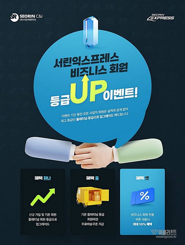서린씨앤아이가 자사 B2B 온라인몰인 서린익스프레스에서 사업자 회원을 대상으로 회원 등급 업그레이드 행사를 진행한다. 이번 행사는 기존 회원과 신규 가입 회원 모두에게 최고 등급인 플래티넘 등급을 부여하며, 1월 17일부터 2월 28일까지 한시적으로 운영된다.