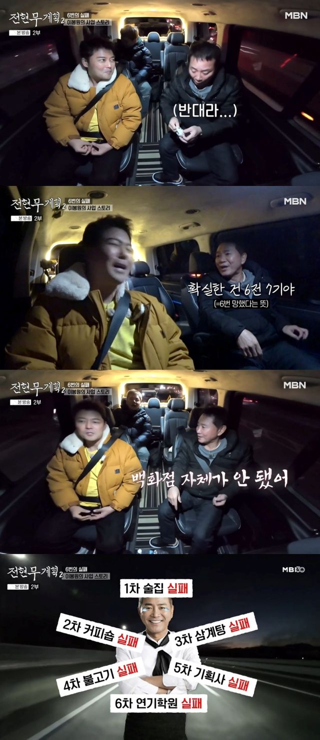 네 번째로 불고기집에 이어 다섯 번째로 엔터 사업을 시작했던 이봉원은 김구라, 현진영, 그 당시 '쌍칼' 박준규까지 계약했지만 2년 만에 실패했다고 덧붙였고, 여섯 번째 연기 학원도 망했다고 털어놨다.