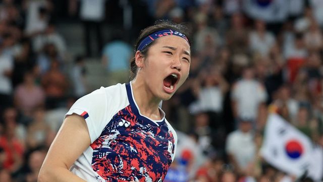 대한민국 배드민턴 대표팀 안세영이 지난해 8월 5일 오후(한국 시각) 프랑스 파리 라 샤펠 아레나에서 열린 2024 파리올림픽 배드민턴 여자 단식 결승 중국의 허빙자오 선수와의 경기에서 금메달을 확정 지은 후 기뻐하고 있다. / 뉴스1