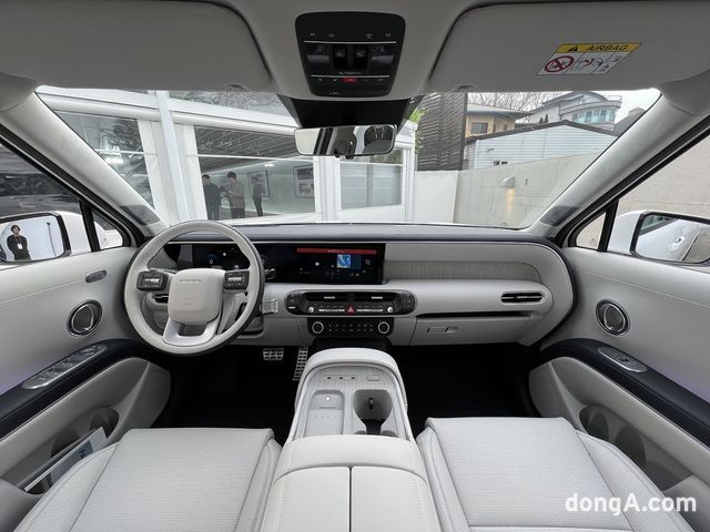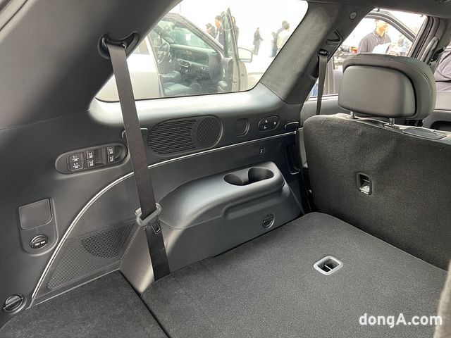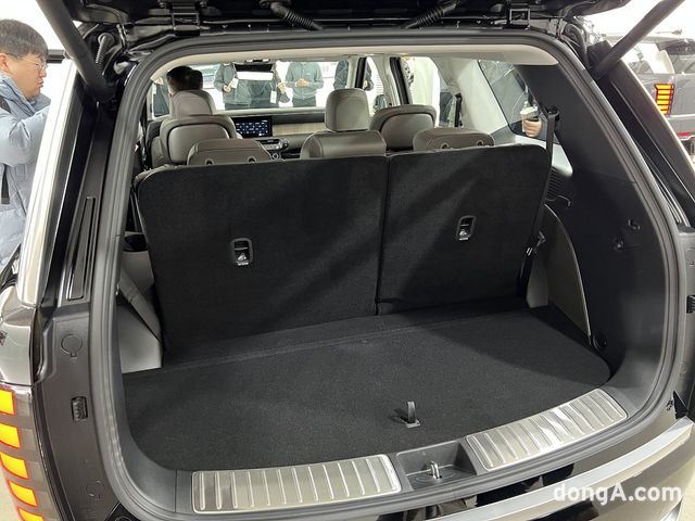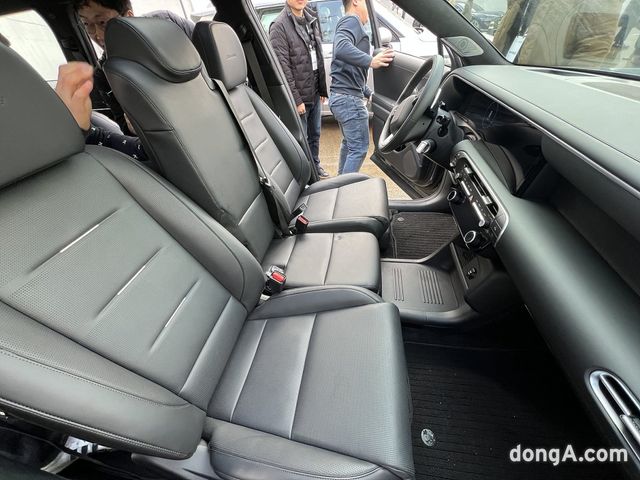 신형 팰리세이드 9인승 모델 탑승구조는 카니발과 다르다. 전체 3열에 앞좌석에 3명이 타고 2열과 3열에 3명씩 탈 수 있는 ‘3+3+3’ 구조다. 2열 좌석이 독립적인 캡틴시트 2개로 이뤄진 7인승과 달리 일반적인 5인승 승용차처럼 벤치형시트로 구성됐다. 일반적인 3~5인 가족이라면 평상시 3열 좌석을 접어 트렁크를 넓게 사용하고 5인승 승용차처럼 활용하기 적합하다. 최신 대형 SUV 모델답게 시트 조작을 위한 다양한 편의사양도 갖춰졌다. 3인 탑승이 가능한 앞좌석은 아이디어가 참신하지만 활용도는 높지 않아 보인다. 성인 남성 3명이 탄 모습이 꽤 불편해 보였다. 가운데 좌석에는 별도로 3점식 안전벨트가 있고 3인 탑승을 고려해 조수석쪽 신규 에어백까지 추가했다. 운전석에서 고리를 잡아당겨 센터콘솔을 접거나 세우는 방식으로 가운데 공간을 좌석으로 사용할 수 있다. 최근 반려동물 인구가 많은데 강아지나 고양이를 태울 수 있는 전용 쿠션이 있으면 이 공간을 더욱 유용하게 사용할 수 있을 것으로 보인다.