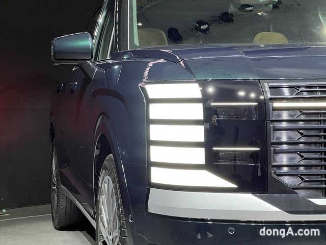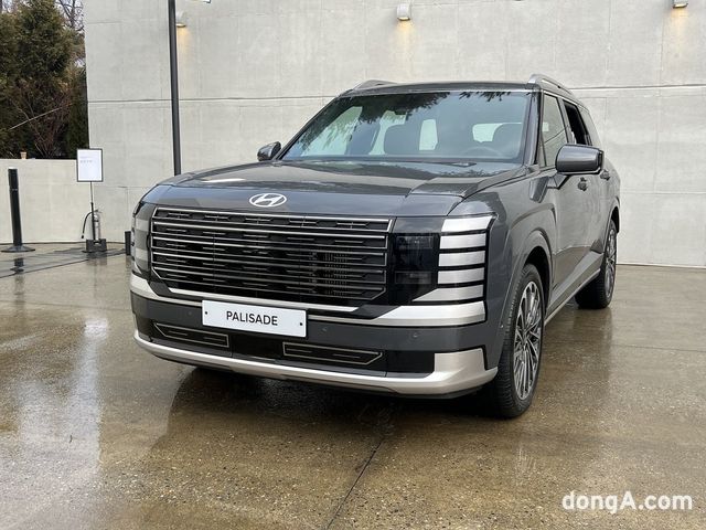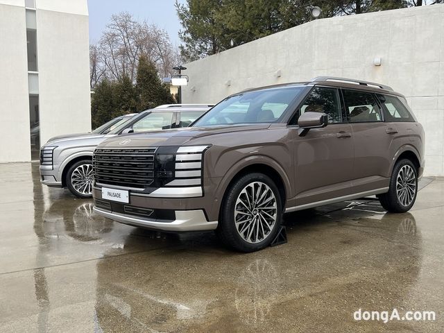 현대차 신형 팰리세이드 9인승 앞좌석에 성인 남성 3명이 타고 있다.