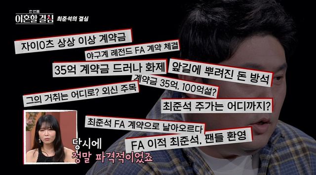 최근 이혼할 결심에 전 프로야구 선수 최준석이 나왔는데
