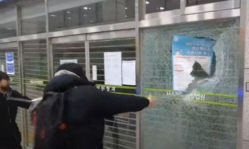 이들은 법원 정문과 유리창을 깨부수며 3시 21분께 법원 내부로 진입했고, 난입한 지지자들은 소화기 등을 던지며 법원 유리창과 집기 등을 부쉈다. 법원의 창문과 집기가 상당히 파손됐고, 외벽 역시 훼손됐다.