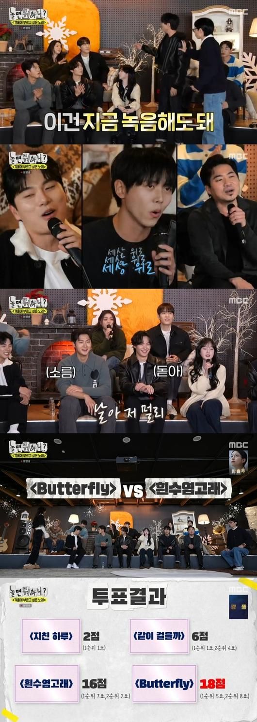 18일 방송된 ‘놀면 뭐하니?’에서는 ‘겨울에 부르고 싶은 노래’ 특집 2편이 방영됐다. 캐롤송 멤버로는 김조한, KCM, 존박, 에일리, 승헌쓰, 오해원이 함께했다.