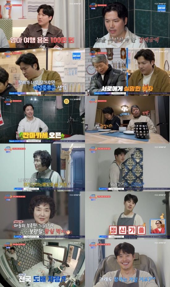 18일 MBC에브리원·MBN ‘다 컸는데 안 나가요’에서는 ‘짠내’ 지조와 ‘반전 금쪽이’ 신정윤의 캥거루 일상이 공개됐다. 파일럿 방송 이후 정규 방송으로 다시 돌아온 ‘다 컸는데 안 나가요’는 변함없는 캥거루 아들들의 티격태격 일상으로 웃음을 선사했다.