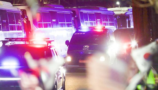 서울서부지방법원에서 열린 영장실질심사를 마친 윤석열 대통령이 탑승한 호송차량과 경호차량들이 지난 18일 오후 경기도 의왕시 서울구치소로 들어서고 있다 / 뉴스1
