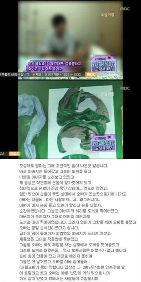 5. (위에 입 찢은사건과 다른) 동거녀가 1년 가까이 뚜드려 맞고 돈 뜯김 동네주민들 증언에 따르면 밤마다 그집에서 여자비명소리가 났다고함