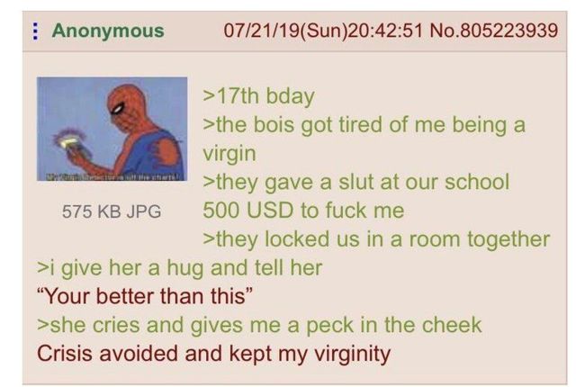> 내 친구들이 아직 내가 동정인걸 아니꼽게 봄