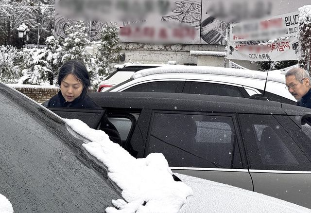 임신 초기인 지난해 11월 27일 눈이 내리던 날 경기도 양평 인근 식당을 김민희와 함께 찾은 홍상수 감독. / 뉴스1