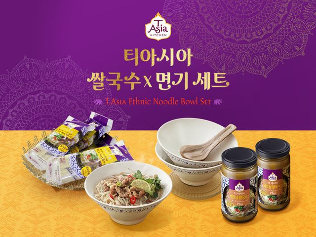 '티아시아 쌀국수X면기 세트'는 △베트남 쌀국수 소스 △라이스 누들 △에스닉 면기 각 2개씩으로 구성되며 네이버 스토어 '새미네마켓'에서 한정 판매한다.