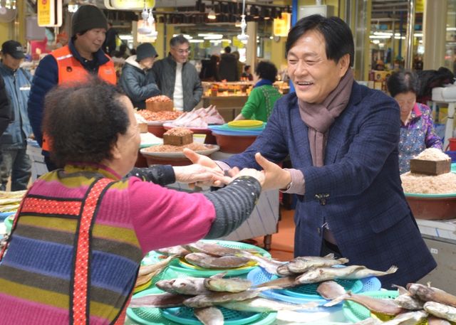 | ▲ 박용철 강화군수, 설 앞두고 민생 속으로...시장 상인 격려 |