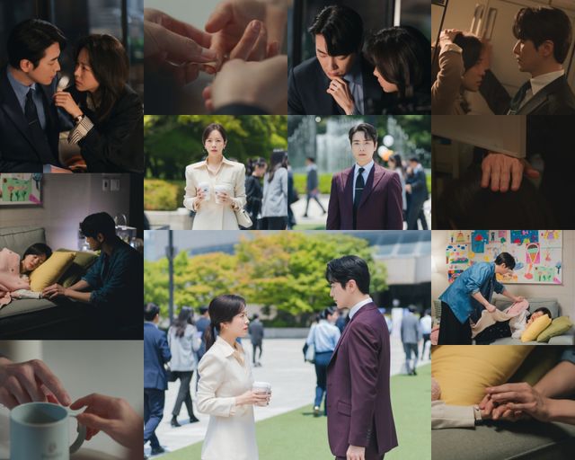 아이 없는 ‘불금’에 얼떨결에 홈 데이트가 성사된 지윤과 은호. 은호가 손수 차린 집밥으로 배도, 마음의 온기도 채운 지윤은 금세 소파에서 잠이 들었다. 그리고 다시 눈을 떴을 땐 이미 날이 밝았고, 은호는 소파 밑에서 자고 있었다. 은호의 딸 별(기소유)이의 컴백 소식 때문에 허둥지둥 집을 빠져나가는 두 사람의 모습이 웃음을 유발한 것도 잠시, 이날 에필로그에서는 은호가 밤새 지윤의 옆을 지키게 된 사연이 밝혀졌다. 지윤이 악몽으로 인해 “가지마”라며 서글피 흐느끼자, 은호가 그녀의 애처로운 손을 꽉 잡아주며 안심시켰던 것. 애틋한 감동까지 불러온 순간이었다.