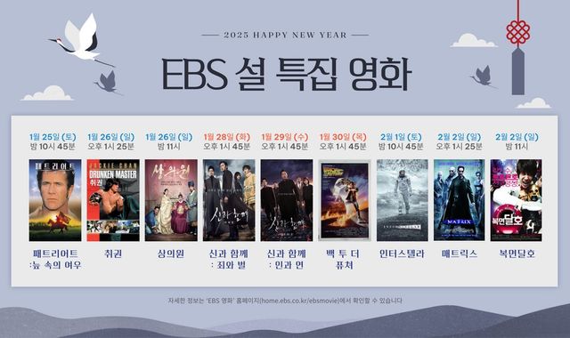 설 연휴를 지루할 틈 없이 채워 줄 EBS의 설 특집영화에 대한 자세한 정보는 ‘EBS 영화’ 홈페이지에서 확인할 수 있다.