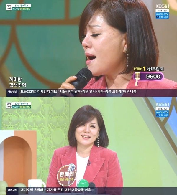 22일 방송된 KBS 1TV '아침마당' 코너 도전 꿈의 무대에는 트로트 가수 한혜진이 출연했다.