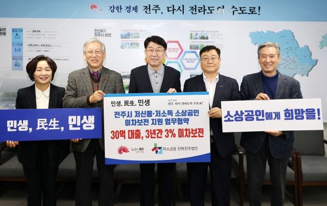이날 협약에 따라 시는 저신용·저소득 소상공인에 대해 대출이자를 3년간 3%씩 이차보전에 나설 계획이다. 또, 미소금융 전북전주법인은 지원대상자에 대한 상담 및 대출 실행에 나서고, 소상공인연합회는 더 많은 소상공인이 혜택을 받을 수 있도록 홍보에 힘쓸 예정이다.