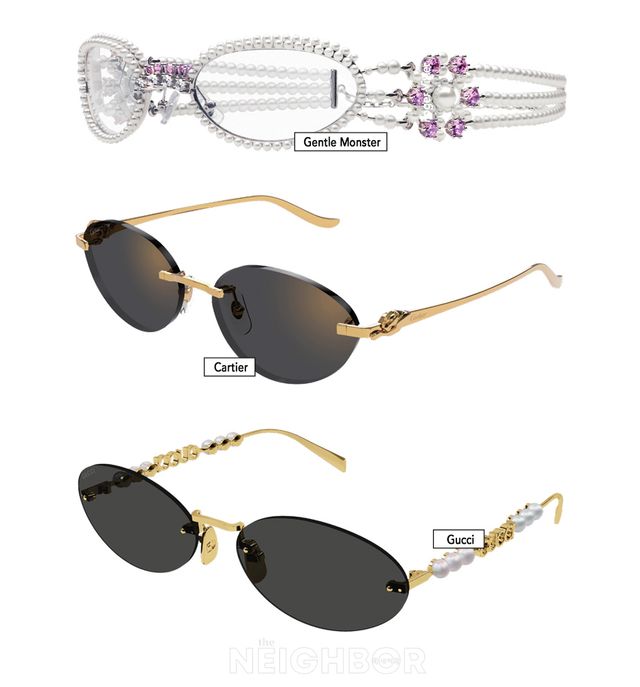 새롭게 등장한 아이웨어의 특징은? 바로 반짝임! 언제나 화제의 중심에 있는 젠틀몬스터의 새 컬렉션은 아이웨어와 주얼리의 경계를 허문 유니크한 스타일이 돋보인다. 까르띠에는 하이 주얼리 컬렉션에서 영감 받아 팬더 모티프를 템플에 올린 우아한 선글라스를, 구찌는 템플에 진주와 컷아웃 구찌 로고를 장식한 선글라스를 공개했다.